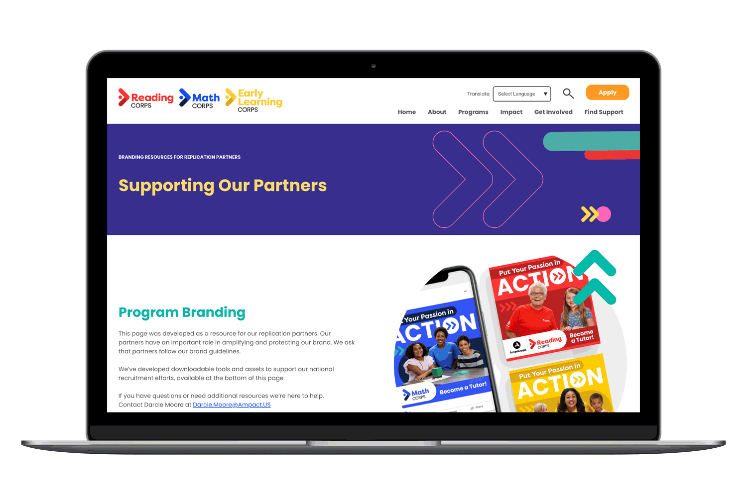 Ampact partners with other organizations who license their programs. Using the existing site structure and design, I created this replication guide and complied a suite of downloadable templates and assets to help licensees maintain consistency.