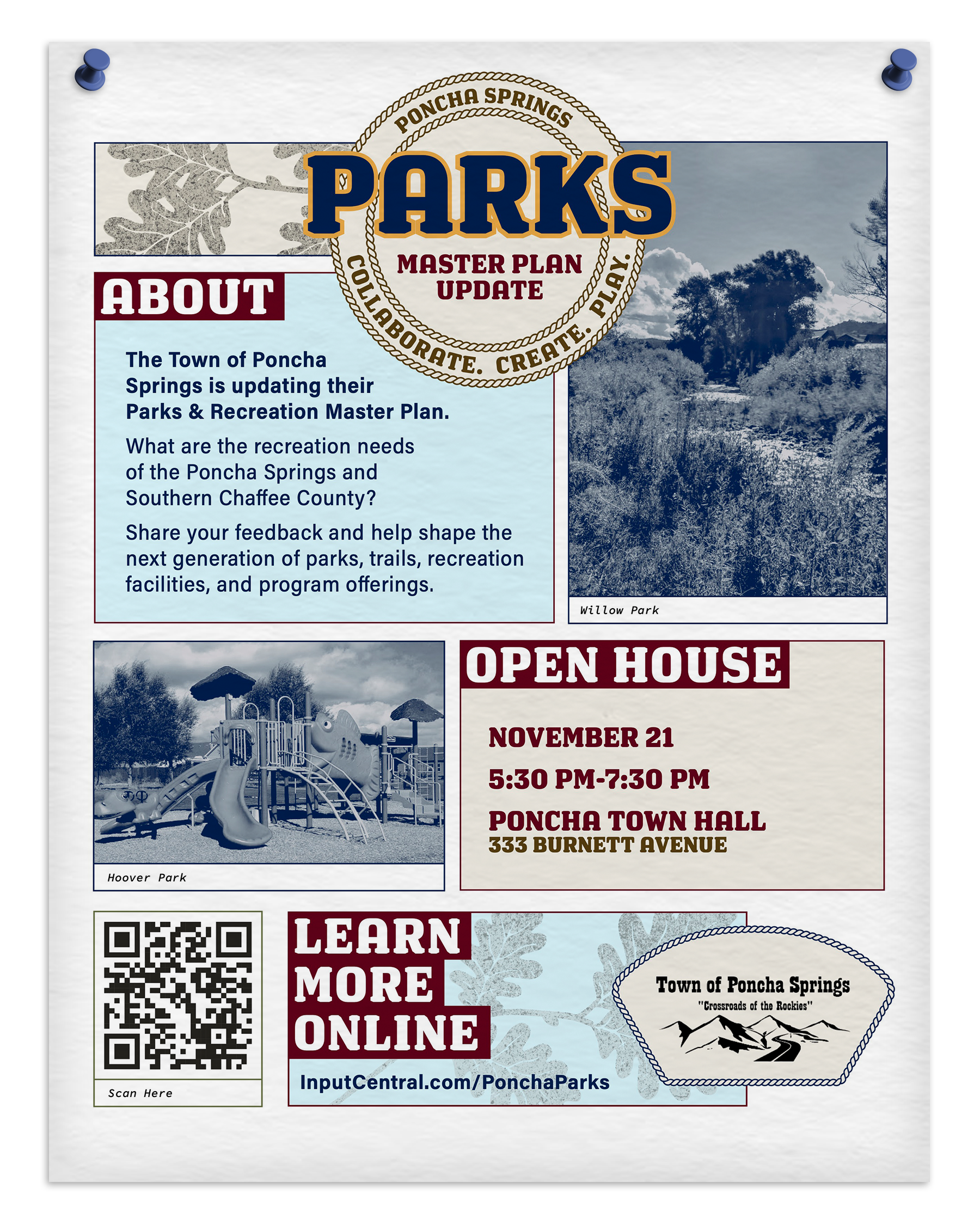 The town of Poncha Springs, Colorado established a campaign to involve the public in development of a Master Parks Plan.